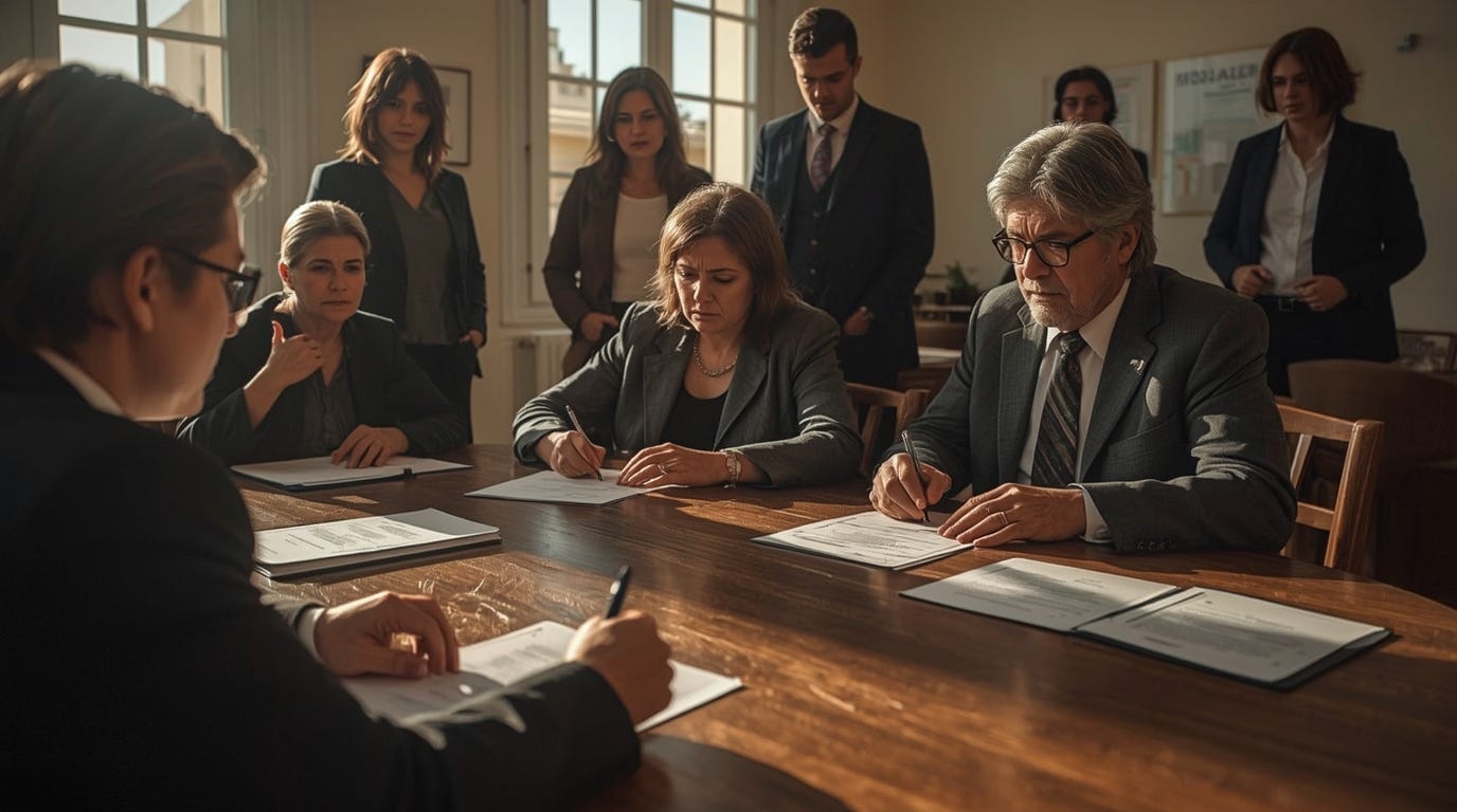 По прилёте в Аликанте мы поселились на одну ночь в отеле. На следующий день агент за нами заехала и доставила нас к нотариусу в Бенидорм. Там собралась куча народу: я, 2 агента (мой и продавца), продавец со своим сыном, представители банка с обеих сторон, нотариус и помощник. Хорошо, что мои решили не толпиться и пошли погулять по пляжу.