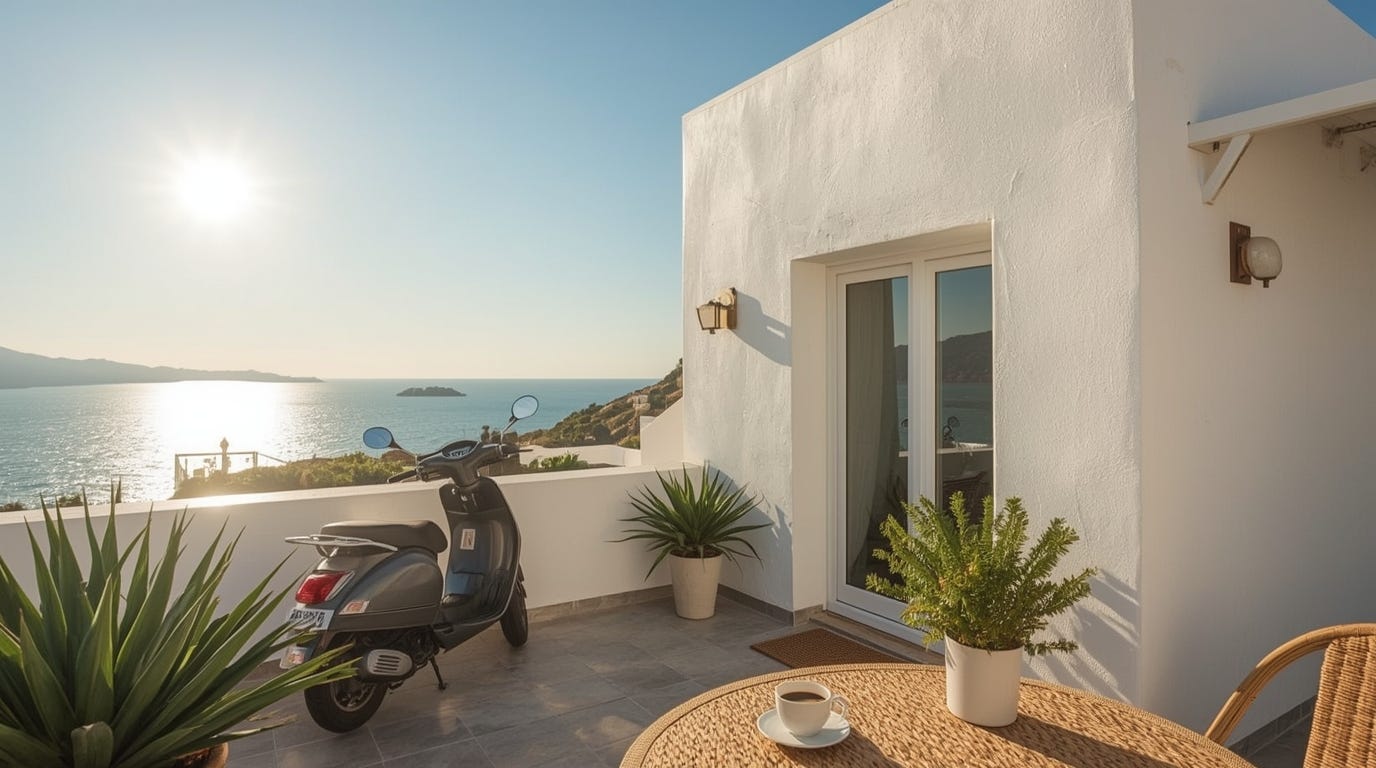 А как хотелось бы продолжать текущий образ жизни: встаёшь, выходишь в труселях на террасу с чашечкой кофэ, обсуждаешь с любимой женой, как завоевать мир, а потом спокойно приступаешь к трудовым обязанностям, причём не выходя с террасы. На обед домашний супчик на той же террасе, после обеда можно сгонять на море, освежиться. Красота!