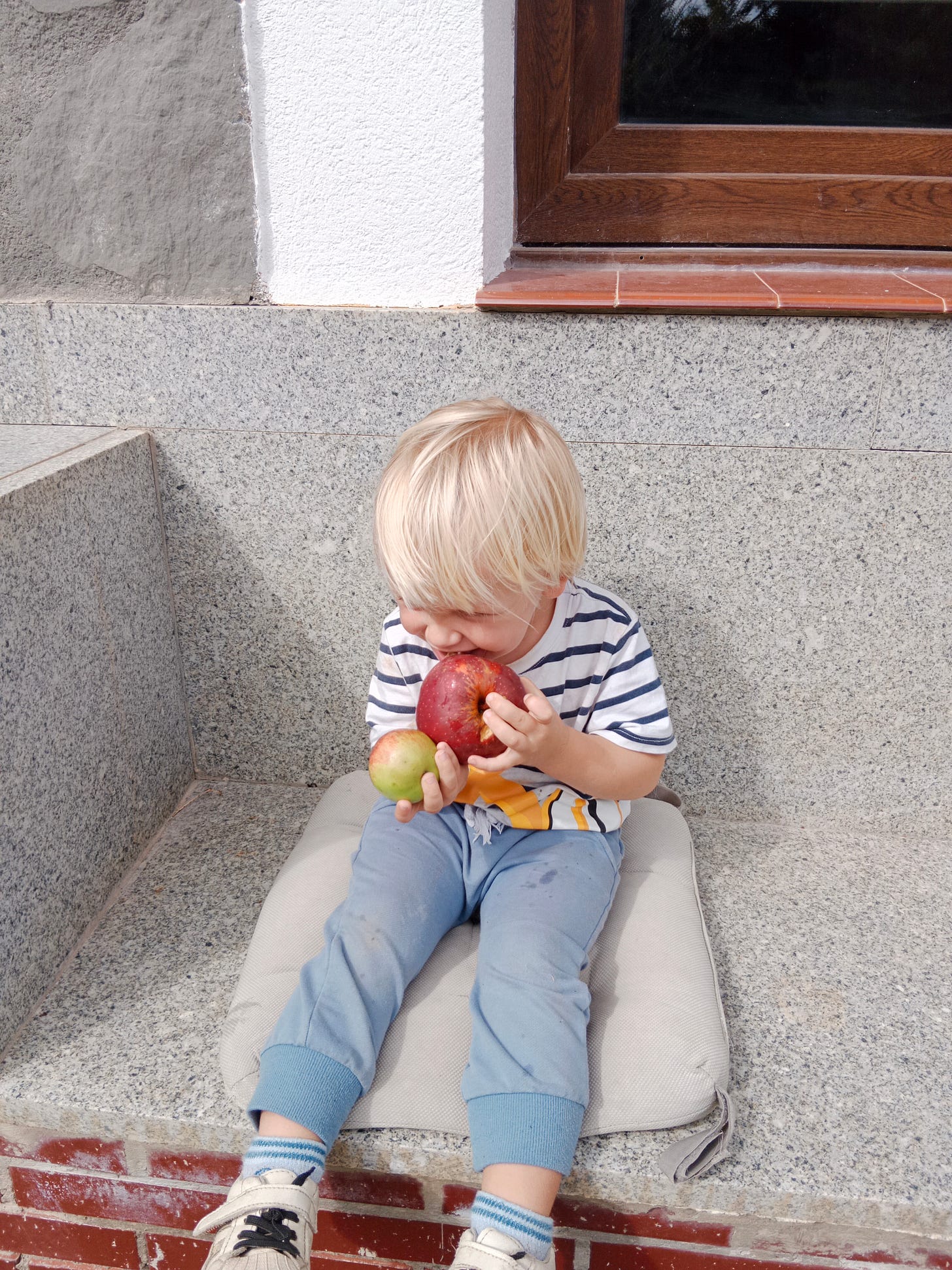 И с августа Эмиль начал ходить в ясли. Первую неделю он плакал при расставании, но как-то не сильно (если сравнить с его сестрой в том же возрасте), потом и вовсе отпускал меня нормально. Адаптация прошла быстро и максимально безболезненно. Конечно же, огромную роль в этом сыграли воспитатели. С любовью, нежностью, добротой и абсолютным принятием они помогали маленькому человеку начать путь в новой среде. Где-то через пару месяцев Эмиль принёс первое испанское слово “гасиас” (gracias), я порадовалась - значит, постепенно начал осваивать новый язык.